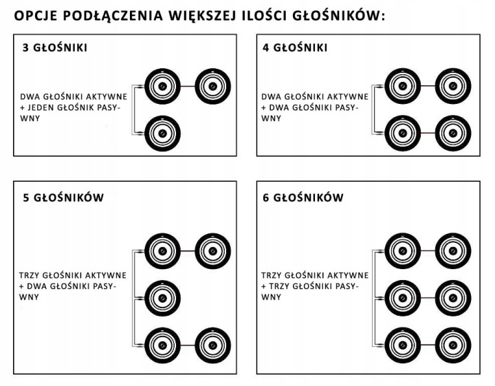 динаміки Lithe Audio Bluetooth дозволяють підключати до трьох активних динаміків, наприклад, у великих приміщеннях, за допомогою функціїlithelink . Просто підключіть кожен з активних динаміків до підсилювача за допомогою кабелю, щоб розширити вашу аудіосистему. Кожен активний динамік може бути підключений до одного динаміка paswyny, так що ви можете мати до 6 динаміків в стереосистемі або моно. За допомогою цього рішення можна створити "зональну" систему.