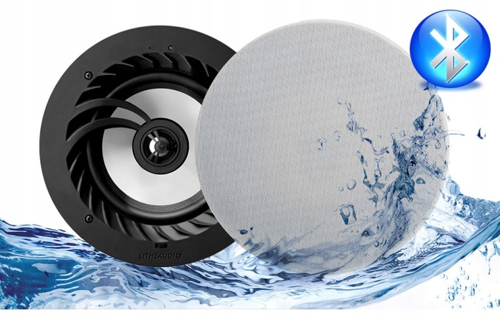 комплект водонепроникних стельових динаміків IP44 з Bluetooth 5.0 потужністю 2x 50 Вт з вбудованим підсилювачем і зовнішнім входом RCA артикул 03211 компанії Lithe Audio - це інноваційне рішення для людей, які цінують відсутність непотрібних елементів в декорі своїх приміщень. Продукт особливо рекомендується для вологих зон або приміщень, схильних до прямого потоку води або високої вологості, таких як: басейн, сауна , спа , оздоровчі центри ,джакузі .
