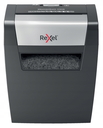 має силу, щоб знищити більше! Подрібнювач Rexel Momentum X308 знищує до 8 аркушів одночасно і може працювати безперервно протягом 3 хвилин-ідеально підходить для домашнього використання. Ріже на конфетті 5 х 42 мм, гарантуючи тим самим безпеку на рівні P3. Він має 15-літровий контейнер для обрізки, який вміщує до 100 аркушів формату А4.