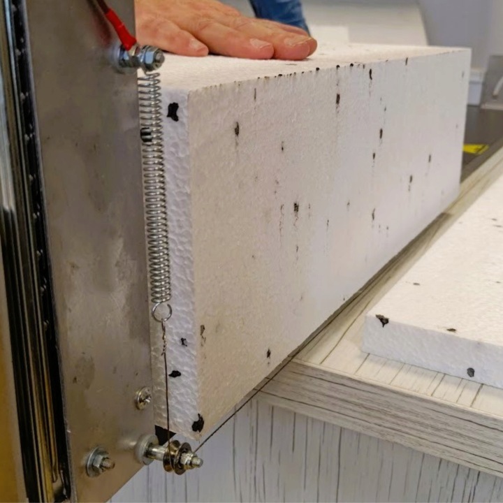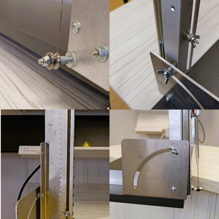 завдяки використаннюалюмінієвого відбійника, закріпленого під кутом 90 градусів до лінії різання, а також двостороннього натягу ріжучого дроту двома пружинами, отриманий розріз характеризується точністю і точністю
