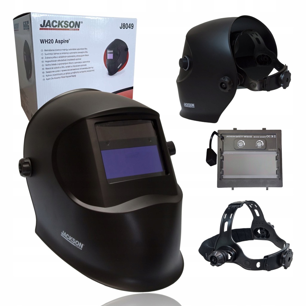 високоякісний зварювальний шолом JACKSON ASPIRE WH20 з автоматичним фільтром WF20 4/9-13 EXTмаска підходить для зварювання декількома методами дугового зварювання: MIG, TIG, MAG, MMA.