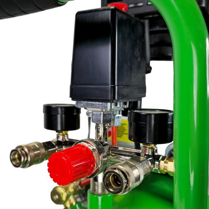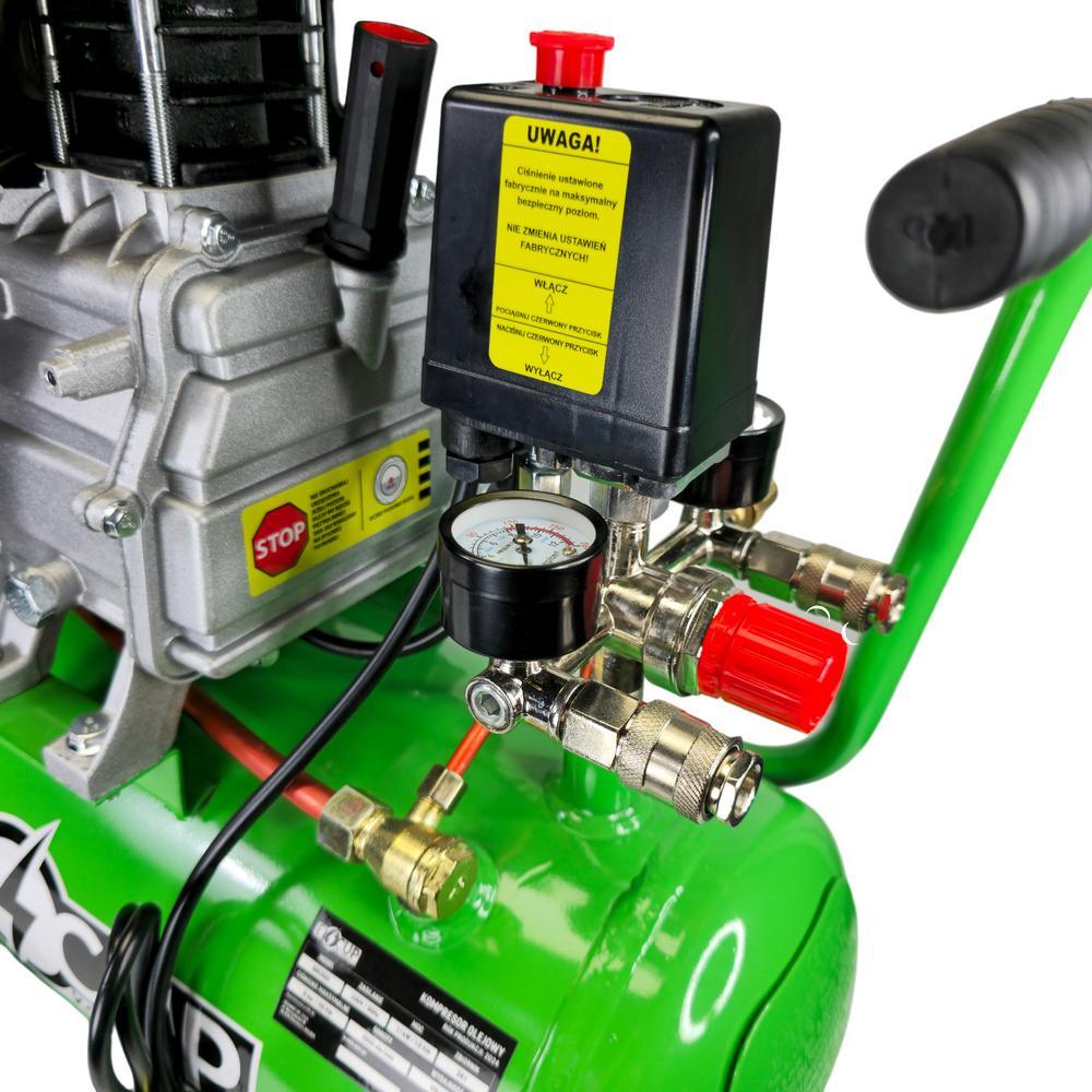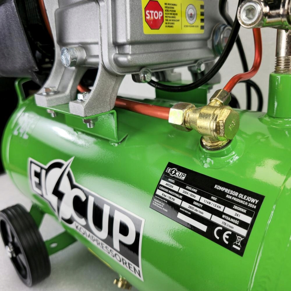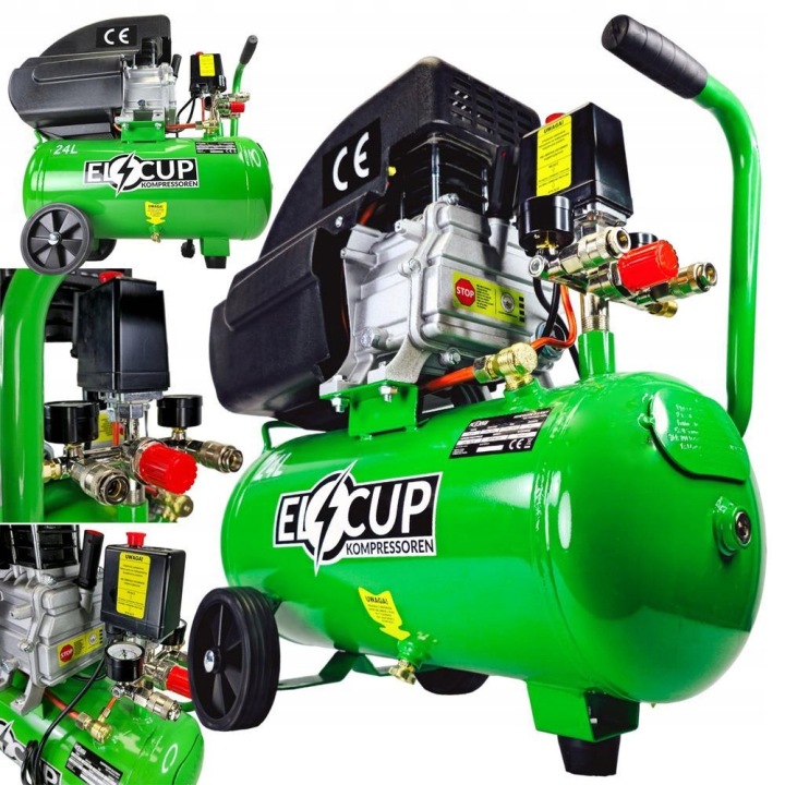 Компресори марки ELCUP - це високотехнологічне обладнання, виготовлене з високоякісних матеріалів. Іншими цінними перевагами наших компресорів є: низькі експлуатаційні витрати багатозадачність, точність і культура роботи. Мала вага компресора робить його дуже ергономічним, він також має автоматичну систему змащення, фільтрацію повітря, редуктор тиску і транспортні колеса. Компресор підходить для тривалої роботи. Компресор після заповнення всього балона автоматично відключається, а після падіння тиску в балоні компресор знову запускається. Завдяки потужному двигуну і компресора компресор виробляє 178 л/хв повітря! Ми гарантуємо, що при дотриманні найвищих стандартів і стандартів Компресори THM будуть відповідати вашим очікуванням.