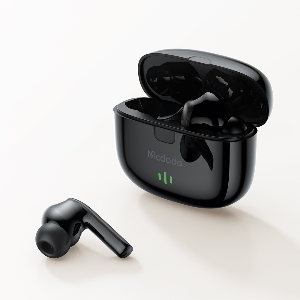 новий Mcdodo Dynamic-в комплекті з чохлом для бездротової зарядки – це неперевершені бездротові навушники, які тепер дозволяють вам говорити ще довше. Ви виймаєте їх з чохла, готового до роботи з будь-яким вашим пристроєм. Як тільки вони у вас у вухах, вони вже підключені, і ви відразу ж занурюєтеся в багатий звук першокласної якості.