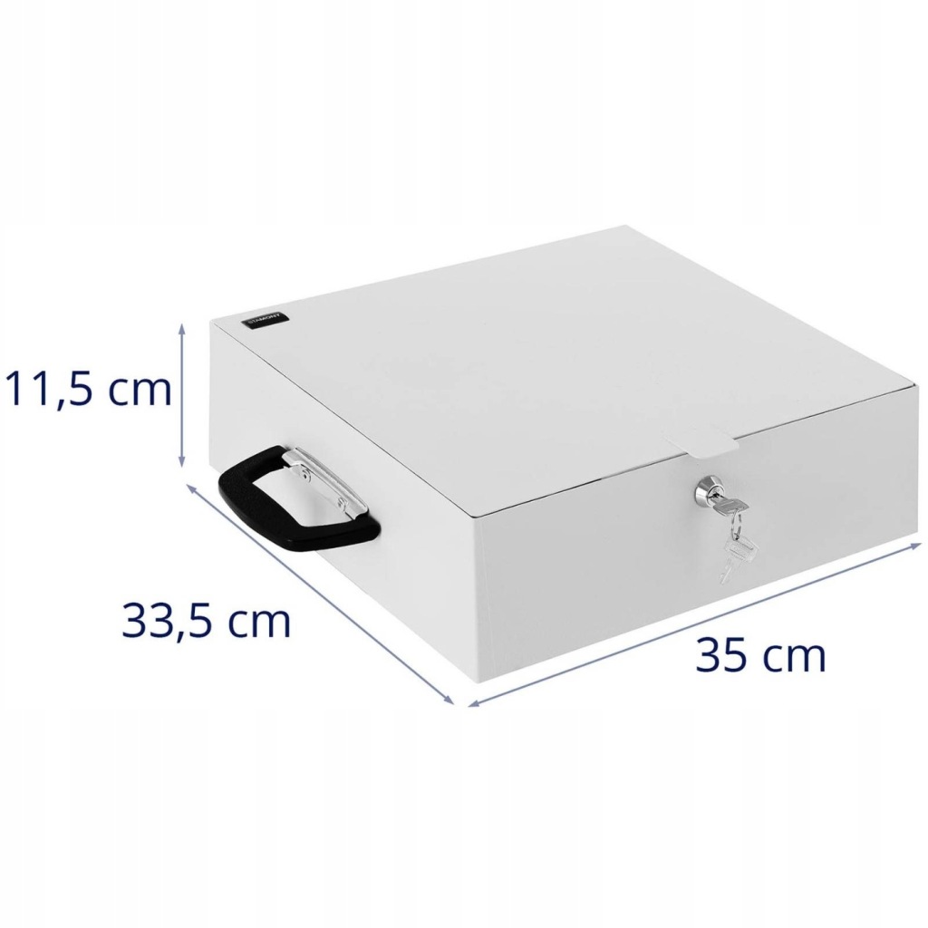 міцна конструкція касети для документів виготовлена з холоднокатаної сталі, яка є захисною кришкою для ваших документів. Кришка надійно закривається на ключ (2 шт.в комплекті). Таким чином, ви захистите документи, ювелірні вироби, електронні пристрої та навіть особисті записи від несанкціонованого доступу. Металевий футляр для документів розміром 350 x 320 x 110 мм пропонує достатньо місця для предметів або паперів формату DIN A4.