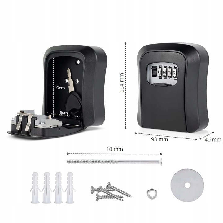 геніальне і практичне рішення для зберігання ключів на відкритому повітрі. Коробка ідеально підходить, якщо вам потрібно залишити ключі від будівлі іншим людям, знайомим з кодом. дозволить вам без проблем залишити ключі від орендаря будівлі або дачного будинку, дитини, що повертається зі школи, сусіда під час нашого відʼїзду або ремонтної команди.