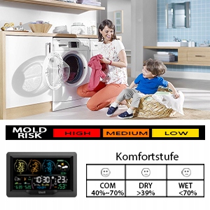 в залежності від температури і вологості. Радіотемпер / гігрометр з яскравими символами нагадує вам про ризик цвілі в приміщенні і на вулиці.