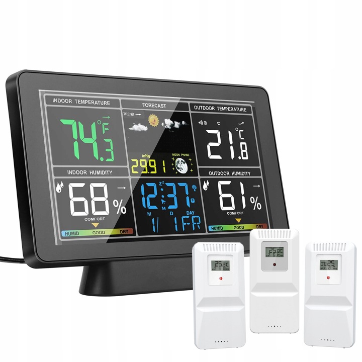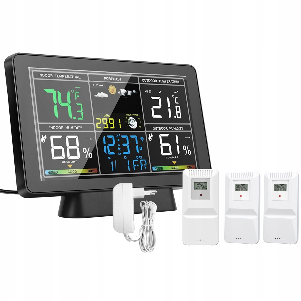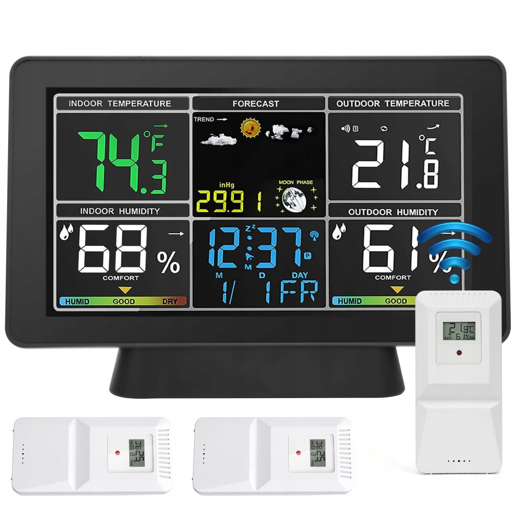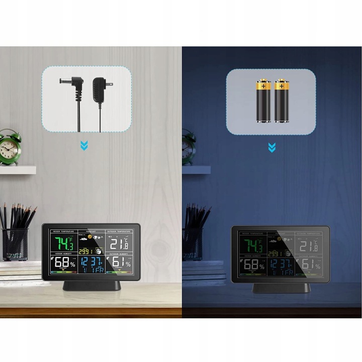 ✅внутрішня і зовнішня температура: основний блок і дистанційний датчик можуть вимірювати внутрішню і зовнішню температуру і вологість окремо. Дистанційний датчик має чутливий передавач з максимальною відстанню виявлення 100 метрів. Основний блок може живитися від 3 батарейок типу ААА або Джерела живлення постійного струму 5 В, тоді як для віддаленого датчика потрібні 2 батареї типу ААА.