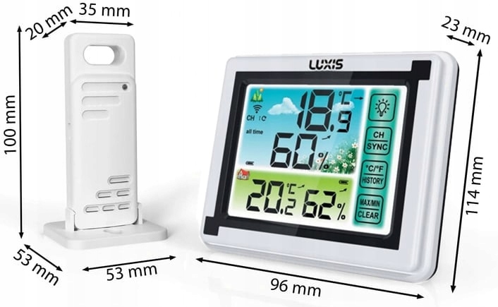 МЕТЕОСТАНЦІЯ БЕЗДРОТОВИЙ ТЕРМОМЕТР ГІГРОМЕТР РК-ДИСПЛЕЙ ПРЕМІУМ МАГНІТ