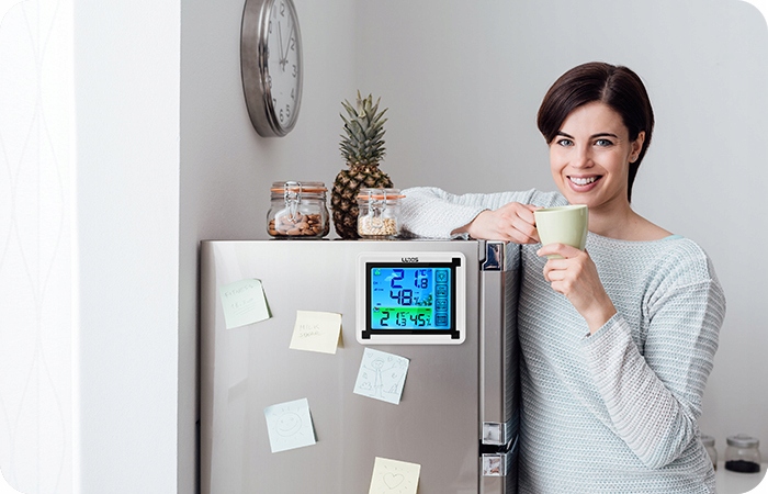магнітні засувки, розташовані на задній панелі пристрою, дозволять швидко і ефектно розмістити метеостанцію, наприклад, на холодильнику. Метеостанція також може бути встановлена безпосередньо на стіл або полиці або підвішена на стіні за допомогою монтажних штифтів.