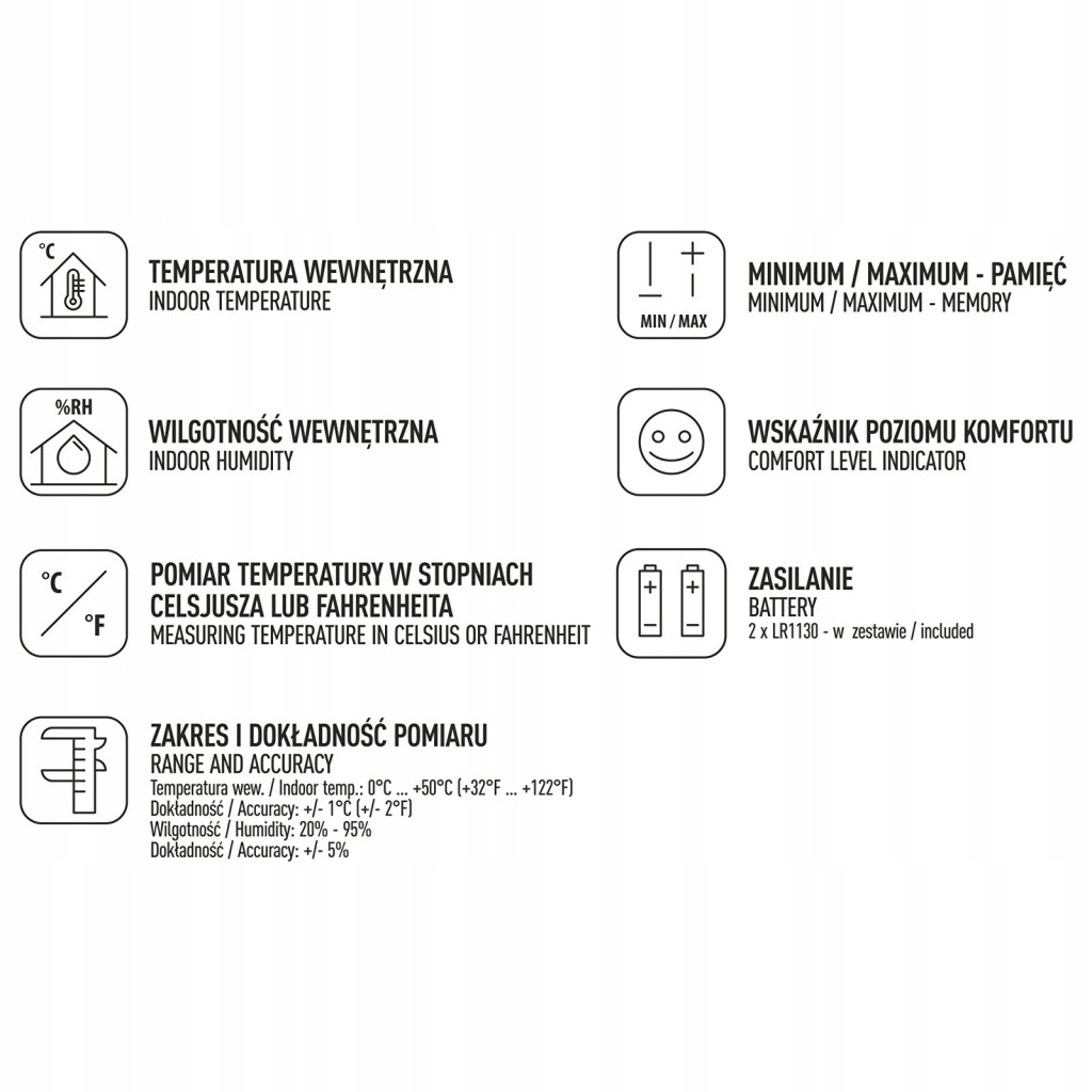 - додаткові функції: WskaźNIK рівень комфорту