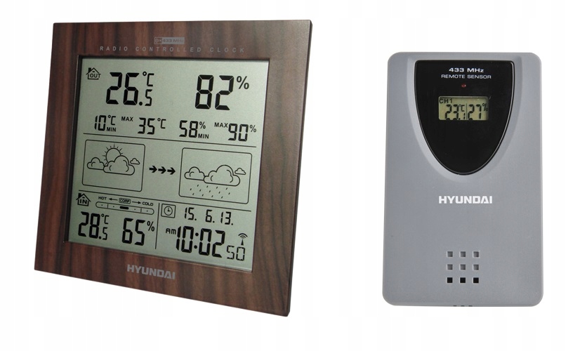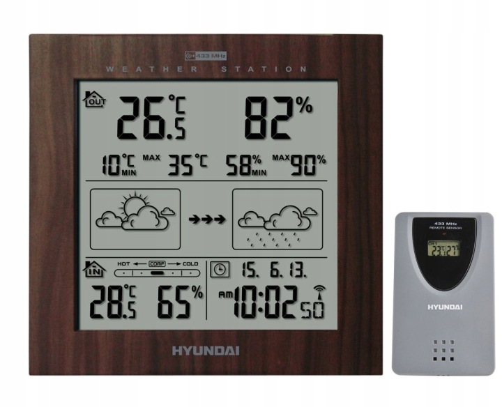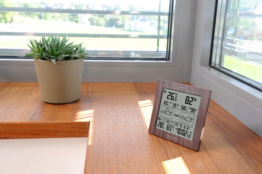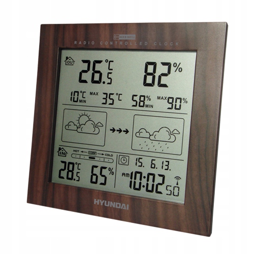 метеостанція Hyundai WS 2244 показує точний час, внутрішню і зовнішню температуру і вологість. Прогноз погоди в графічному вигляді покаже, яка погода нас чекає в найближчому майбутньому. метеостанція-це приємне доповнення, але і практичний подарунок.
