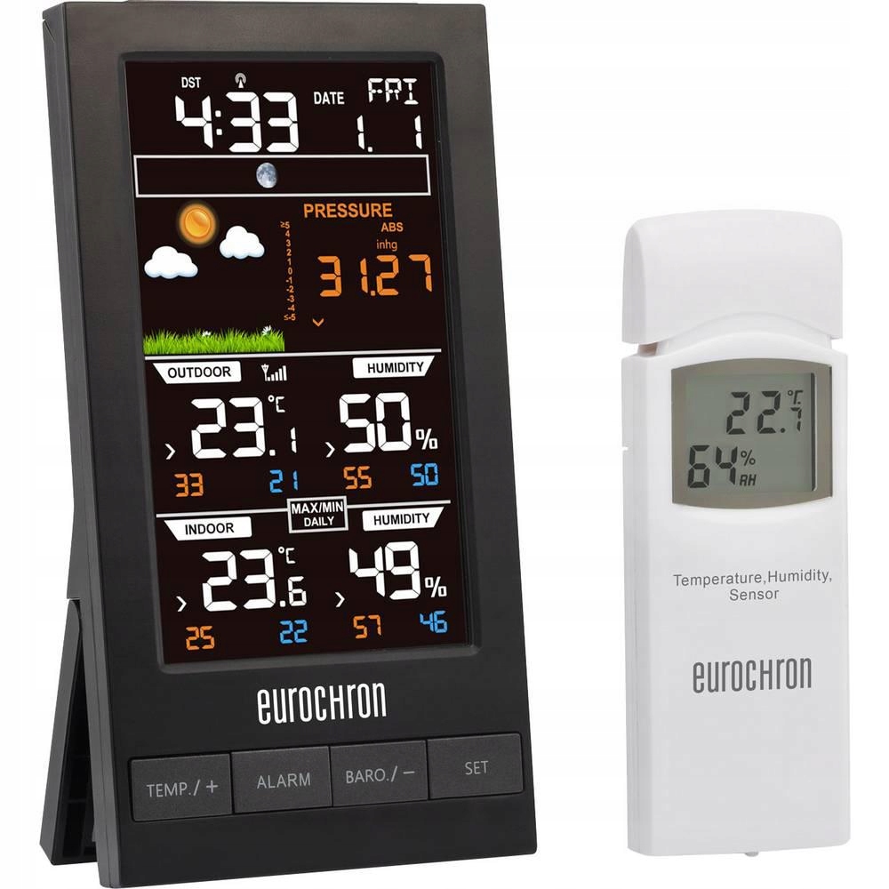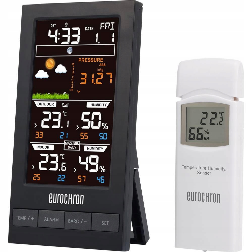 з радіостанцією погоди Wfws S250 у вас завжди є всі дані про погоду в полі зору. Бездротовий зовнішній датчик дозволяє отримувати найточніші дані про погоду температури і вологості повітря. І це без складної проводки. Базова станція також має датчик температури і тиску повітря і показує всі відповідні дані з першого погляду. Крім того, базова станція записує мінімальні та максимальні значення протягом дня та пропонує функції прогнозу погоди від 12 до 24 годин та вбудовану сигналізацію. Дисплей дати і, завдяки радіоконтролю RCC, завжди точні годинник доповнюють пристрій і роблять EFWS250 універсальної і точної метеостанцією. детальні характеристики: дисплей: час календаря (радіо через RCC) таймер сигналізації з функцією повтору температура в приміщенні температура на відкритому повітрі вологість бездротовий датчик температури і вологості на відкритому повітрі з трендовим дисплеєм вимірювач тиску повітря з трендовим дисплеєм кольоровий дисплей на відкритому повітрі точка роси запис хв./ Макс Зовнішні розміри: відстань передачі у відкритій місцевості: макс. 100 метрів. Діапазон температур: від -40 ° C до + 60 ° C (дисплей OFL для зовнішньої зони) дозвіл: 0,1 ºC Діапазон вимірювання відносної вологості: від 10% до 99% точність вимірювання вологості: +/- 5% нижче 0 - 45 ° C інтервал вимірювання температури і вологості датчика: 48 сек водонепроникність: IPX3 Максимальний струм датчика: робота 45 мА і режим очікування 30 МКА внутрішнє вимірювання: інтервал вимірювання: 60 сек діапазон 60 ° C дозвіл: 0,1 ºC Діапазон вимірювання відносної від 10% до 99%, точність: 1% Діапазон вимірювання тиску повітря: 300 гПа - 1100 гПа точність: 0,1 гПа / ± 3 гПа (гарантовано тільки від 700 до 1100 гПа) - інтервал вимірювання: 60 з радіопередача: частота передачі: 868 МГц потужність передачі: менше 20 МВт максимальна відстань передачі: 100 метрів джерело живлення: базова станція: адаптер постійного струму 6 в 0,5 А (входить в комплект) або 3 лужні батареї AAA 1,5 В LR6 (не входять в комплект) зовнішній датчик: 2 лужні батареї AA 1,5 В LR03 (не входять в комплект) термін служби батареї: прибл. 12 місяців розміри: приймач: 162 x 24 x 84 мм, Вага: 180 г датчик: 122 x 40 x 18 мм, Вага: 50 г ""