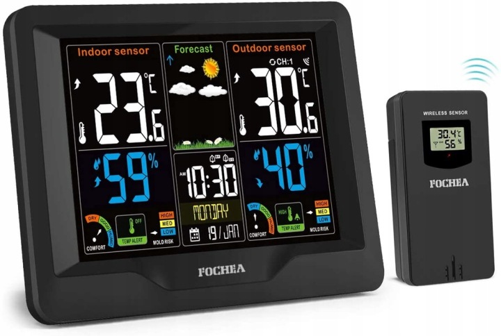 Метеостанція fochea цифровий термометр зовнішній датчик точний чорний
