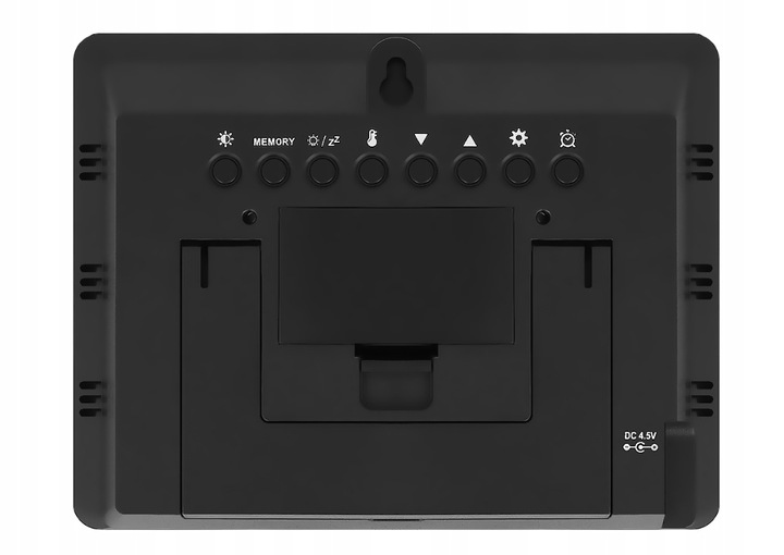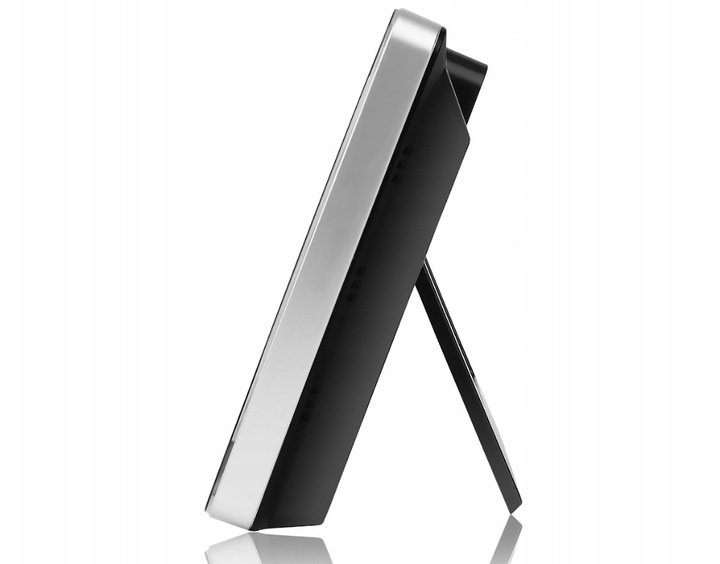 ✓ харчування також проводом ✓ живлення від акумулятора ✓ можливість регулювання нахилу станціїкнопка із зображенням термометра, утримувана протягом 1-2 сек, включає в себе параметри налаштування будильника, який повідомить нас про те, що температура, яку ми встановили, тільки що настала.