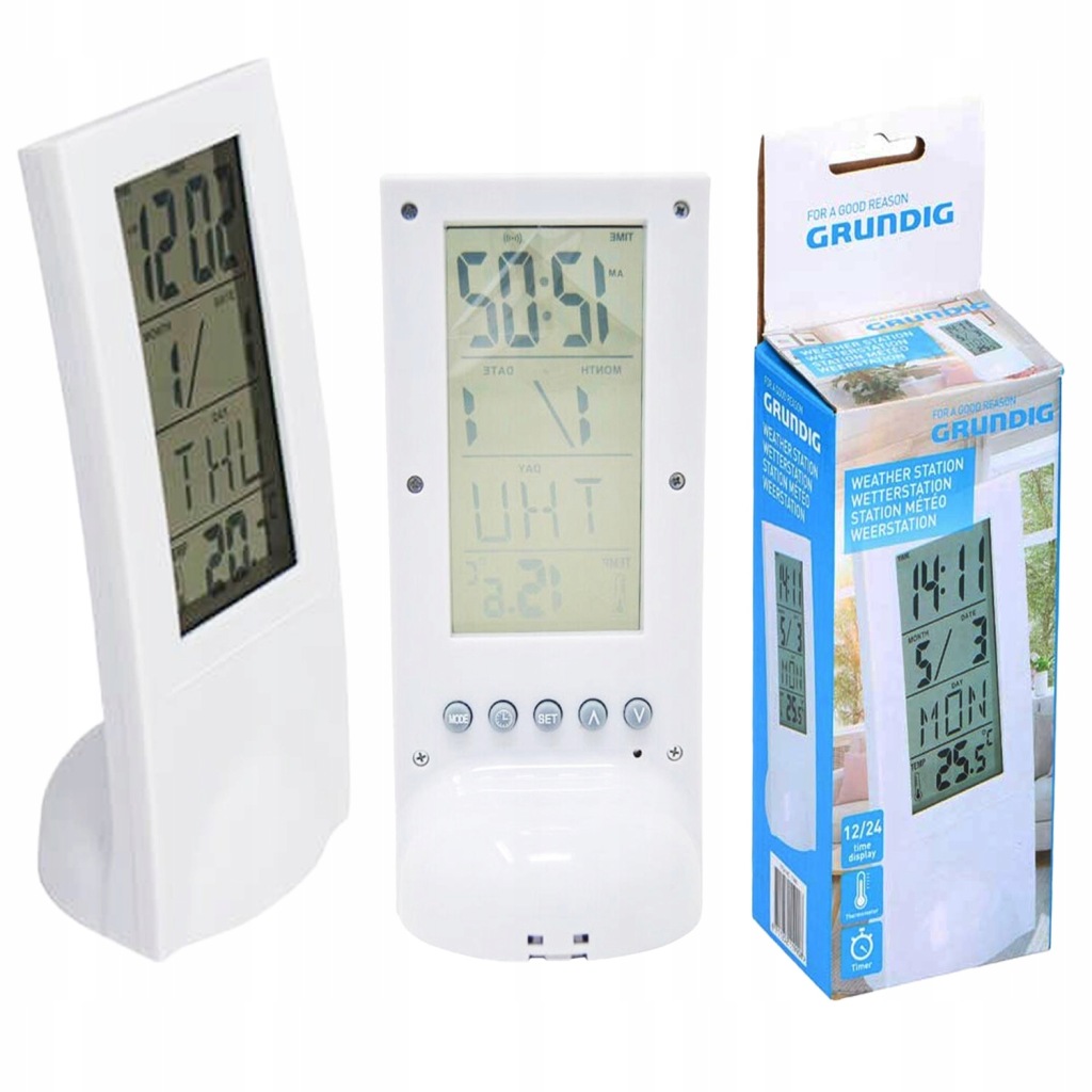 пристрій Grundig поєднує в собі функції годинника з таймером, календарем і термометром.