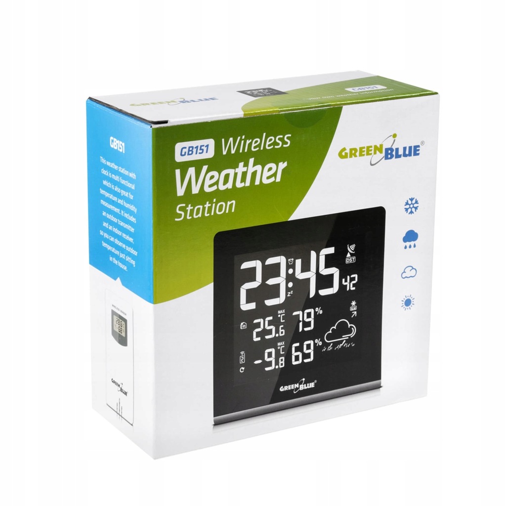 - бездротова метеостанція 9 кольорів GREENBLUE GB151 DCF VA LCD
