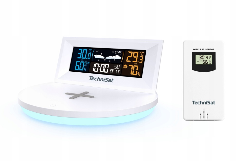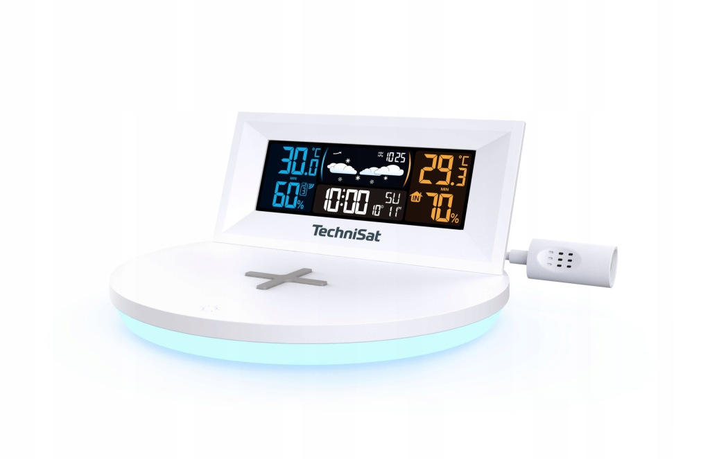 на великому кольоровому дисплеї з трьома режимами підсвічування ви можете побачити час і всі важливі виміряні значення і функції. Атмосферне світлодіодне освітлення базової станції може приймати різні кольори.