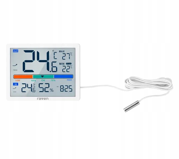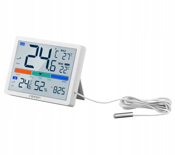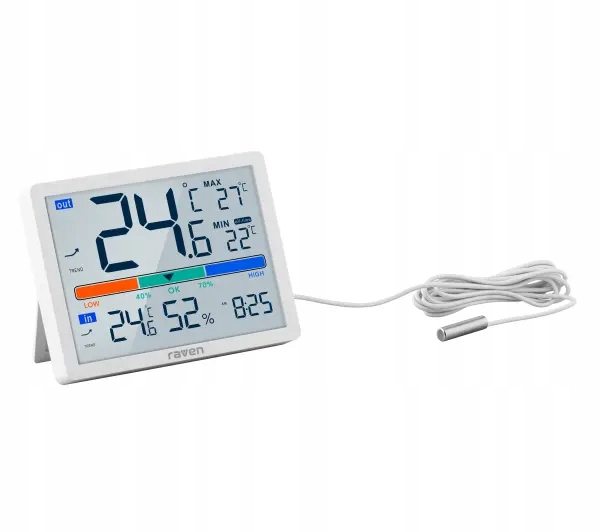 Метеостанція Raven ESPOG09 вимірювання температури Годинник Білий