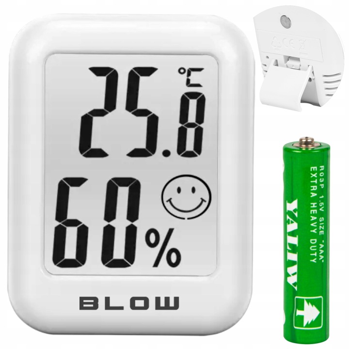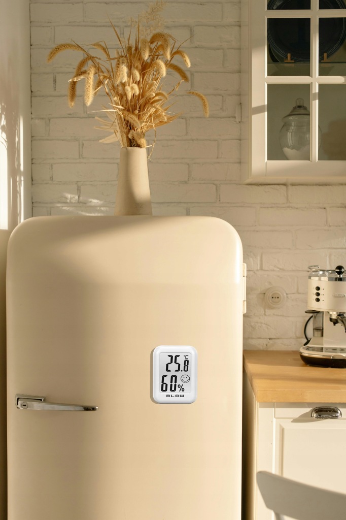 вологість повітря і температура в приміщенні, в якому ми знаходимосяробить дуже великий вплив на наше здоровʼя - для людини це не приносить користі ні занадто низький, ні занадто високий рівень.надлишок сприяє розвитку грибка і цвілі, що збільшує ризик захворювання або погіршення самопочуття. занадто сухе повітря призводить до сухості шкіри і слизових оболонок, що може призвести до зневодненняі збільшує ризик виникнення повʼязаного з цим захворювання. за допомогою термогігрометра BLOW ви можете в будь-який час перевірити, чи підходить якість повітря у вашій кімнаті для вашого тіла.