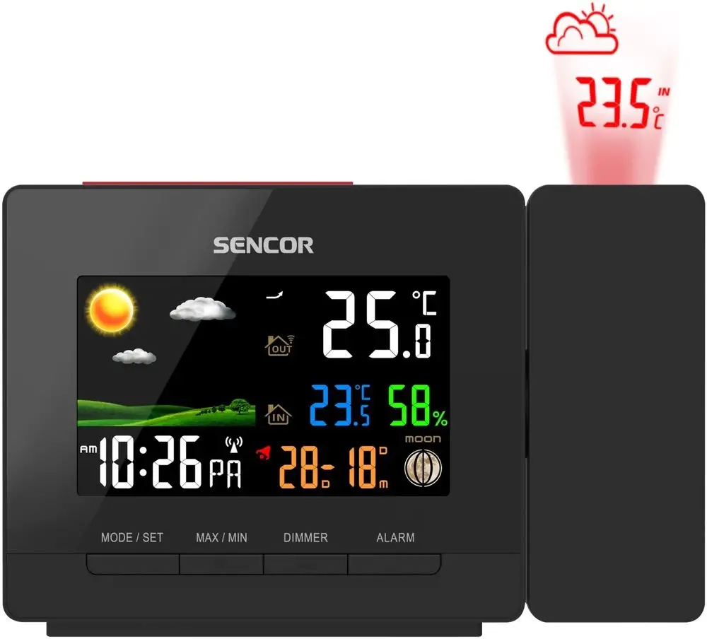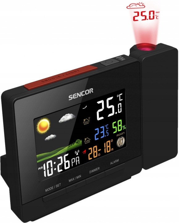 метеостанція з проекцією прогнозу погоди і часом або температурою