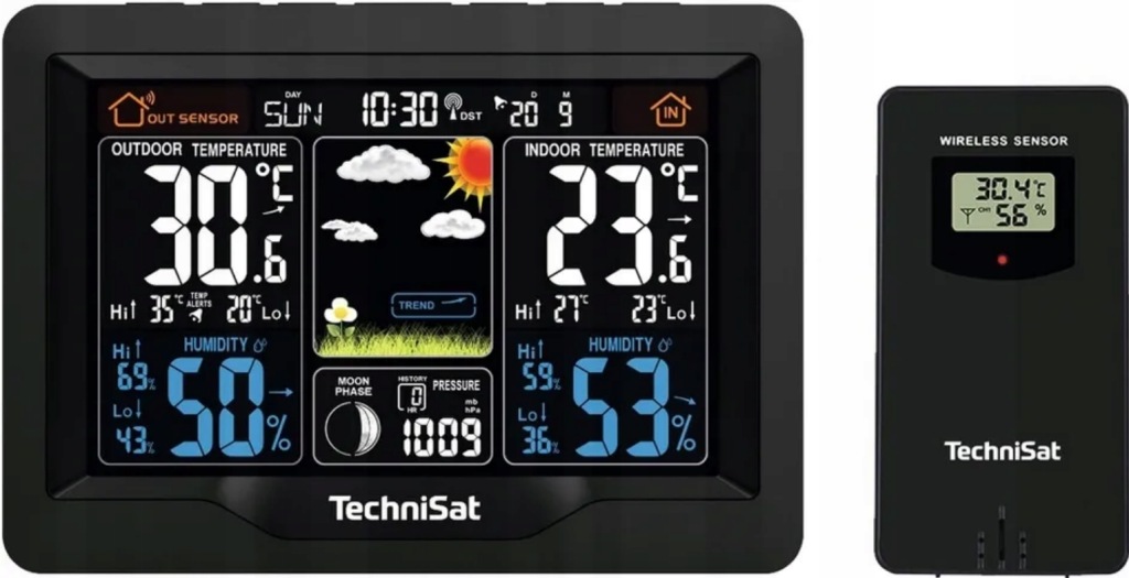 з функцією вимірювання температури, тиску і тренда погоди, додатково оснащена зовнішнім датчиком погоди і кольоровим дисплеєм.