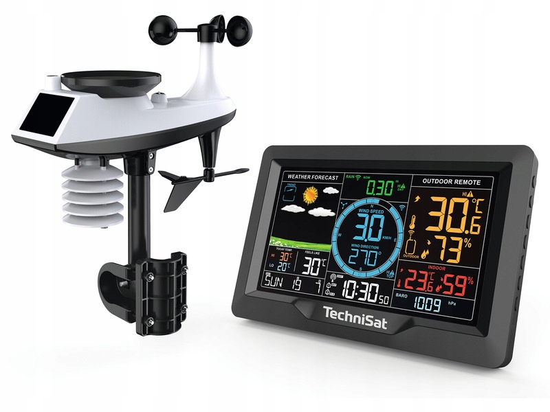 Sprz & # x119;t дозволяє зчитувати дані про & # x105;про температуру, волого& # x15B; про, високоśпро опадиóпро і prędko & # x15B;про вітер. Są one поставляється зękiłemu і док-станцією & # x142;ADN до мультисенсора з живленням від панелі S & # x142;onec. TECHNISAT IMETEO X6 76-4924-00 дозволяє контролювати параметрóу внутрішніхątrz кімнатń, а дані з зовнішніхątrz записується są у випадкахą датчик зовнішніхętrz з zasięдо 100 метрівóв.