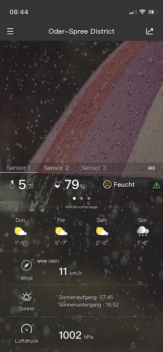 - відображає прогноз погоди на основі даних зовнішнього датчика
