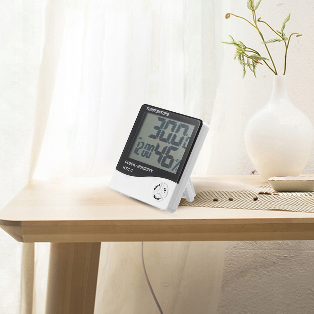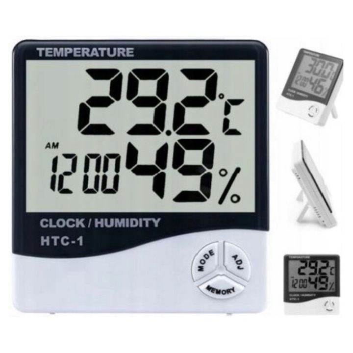 ✅ чіткий РК-дисплей , що показує температуру всередині приміщення, годинник / дату і вологість повітря.