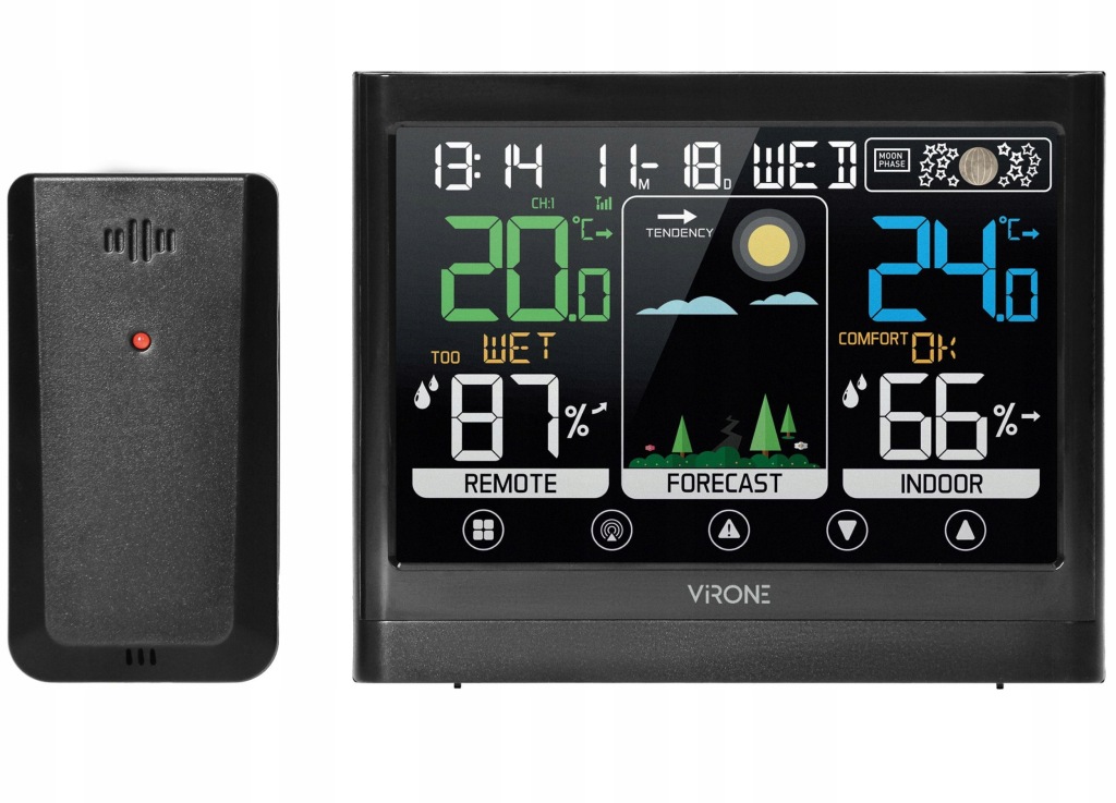 ⭐ багатофункціональна бездротова метеостанція - бездротова станція відображає значення температури і вологості в приміщенні і на вулиці і має безліч інших функцій. Станція також призначена для прийому сигналу зовнішнього датчика, який передає на неї дані по радіо.