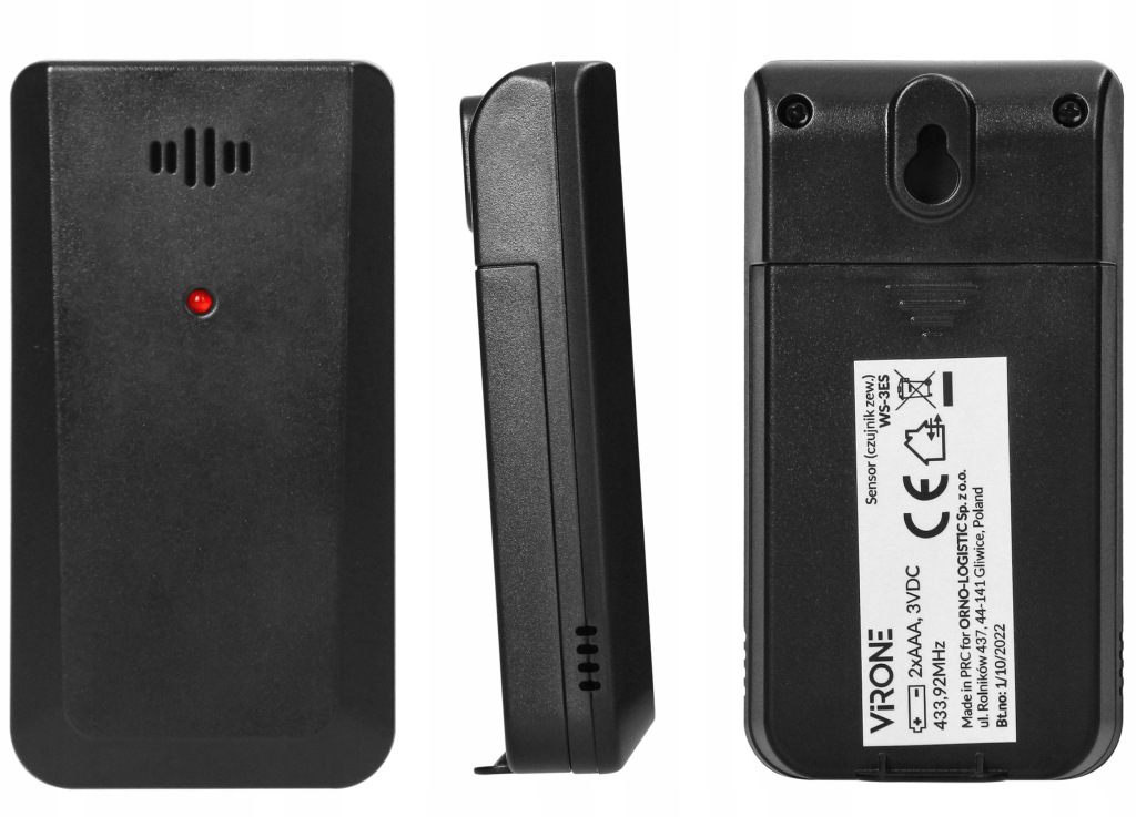 датчик живиться від батарейок 2X AAA (не входить в комплект) і має ступінь герметичності IP44, тому він може піддаватися впливу суворих погодних умов, таких як дощ або сніг.