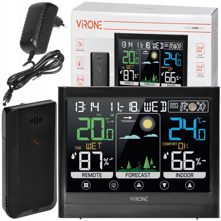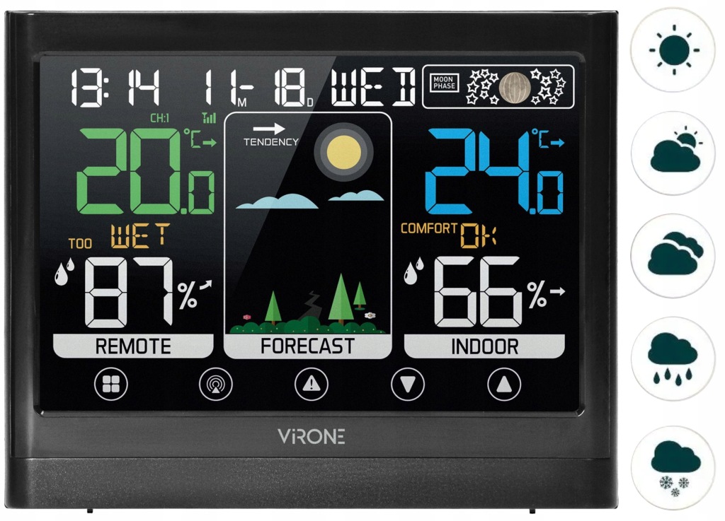 ⭐ прогнозування прогнозу 12-24h - завдяки постійному моніторингу температури і вологості станція аналізує і прогнозує прогнози погоди протягом наступних 12-24 годин, інформуючи нас про це.