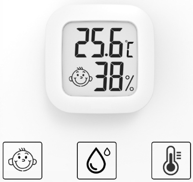 внутрішня електронна метеостанція з вбудованим датчиком температури і гігрометром - надзвичайно корисна в будь-якому будинку, особливо в дитячій кімнаті, де важливо підтримувати правильну температуру і вологість повітря. оснащений великим, легко читаним РК-дисплеєм , який показує всі основні виміри і загальний комфорт в кімнаті.зручна установка завдяки клейкій стрічці на зворотному боці корпусу.