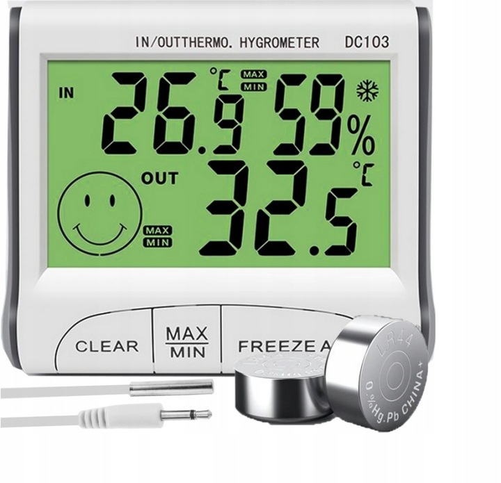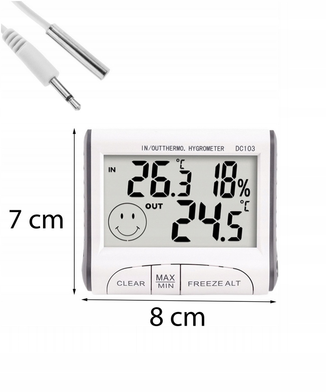 продукт покаже нам поточну температуру і вологість в приміщенні,а також додаткову температуру зовнішнього повітря завдяки зонду, стійкому до атмосферних впливів.