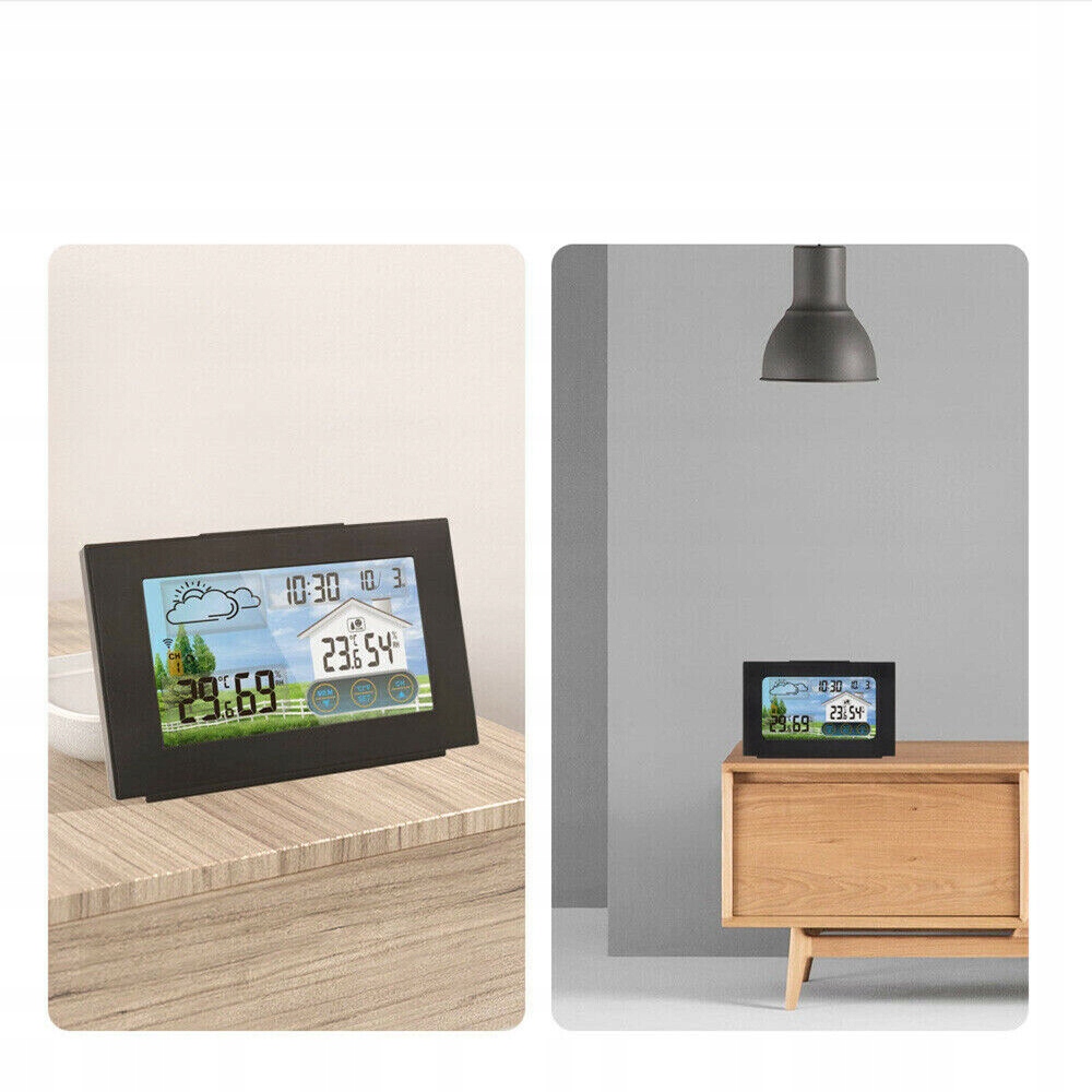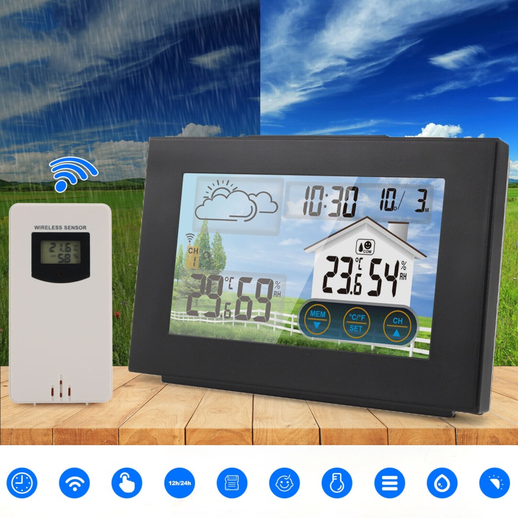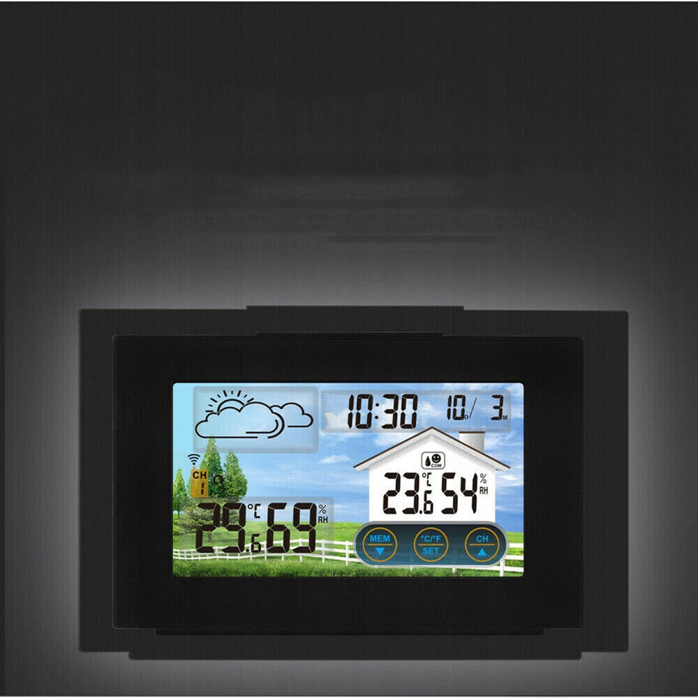 【【великий екран】 бездротова метеостанція оснащена великим РК-екраном, вся важлива інформація про погоду ясна з першого погляду. Яскравий кольоровий дисплей покращує читаність дисплея і полегшує відображення вимірювань. Багаторівневе підсвічування і добре видима типографіка покращують видимість на великі відстані і вночі.
