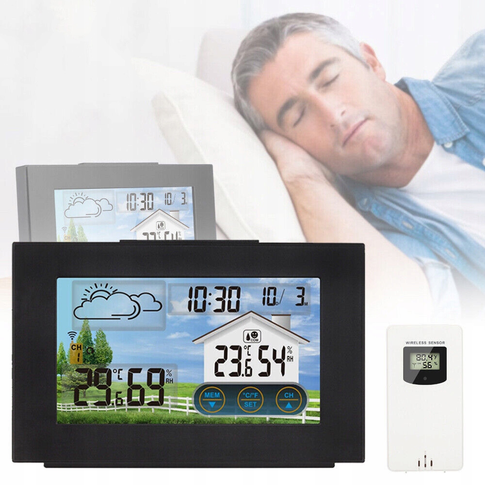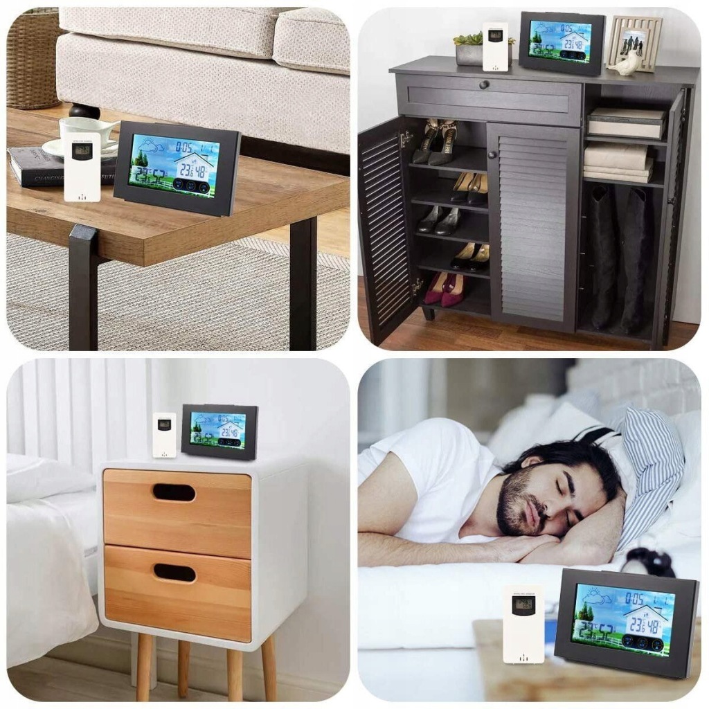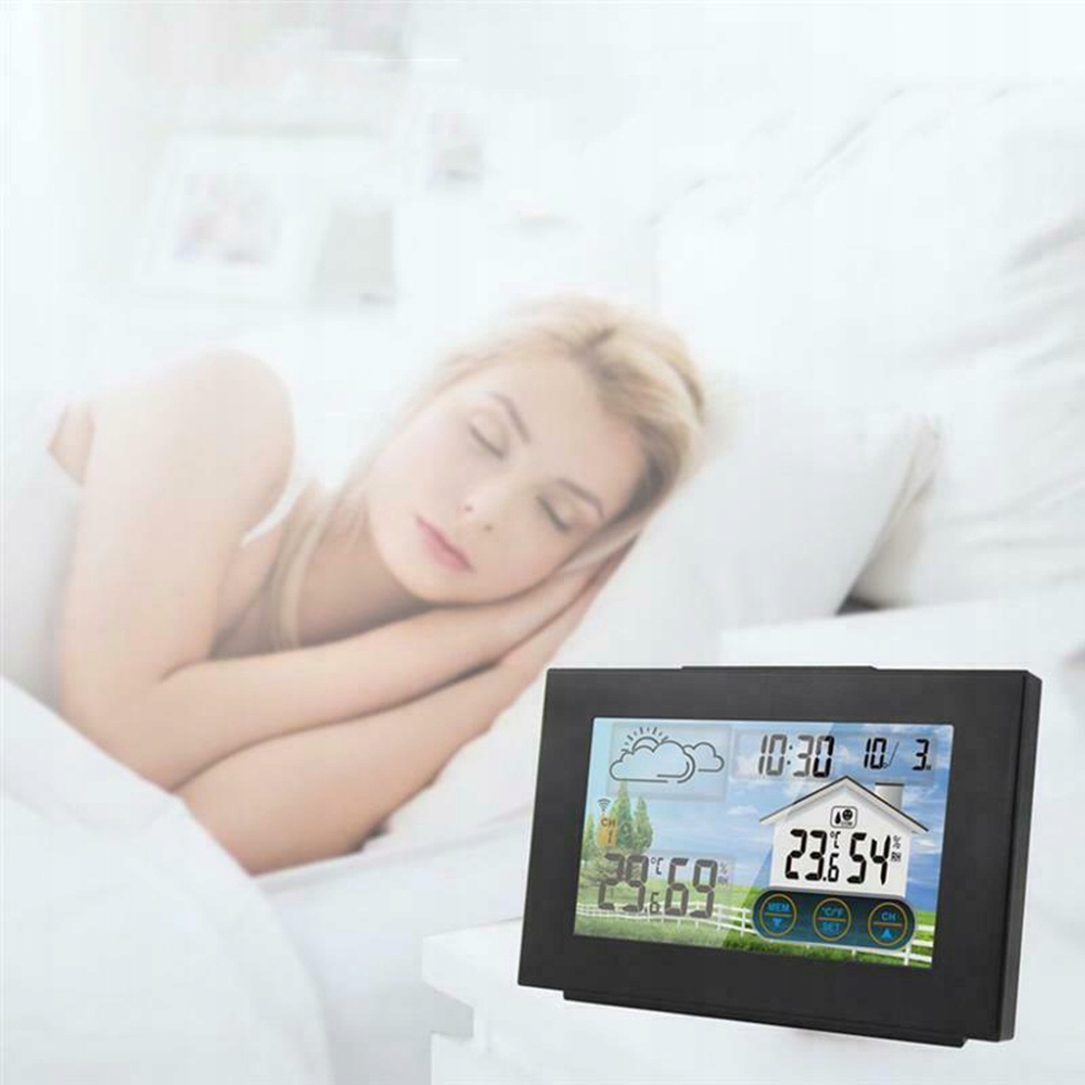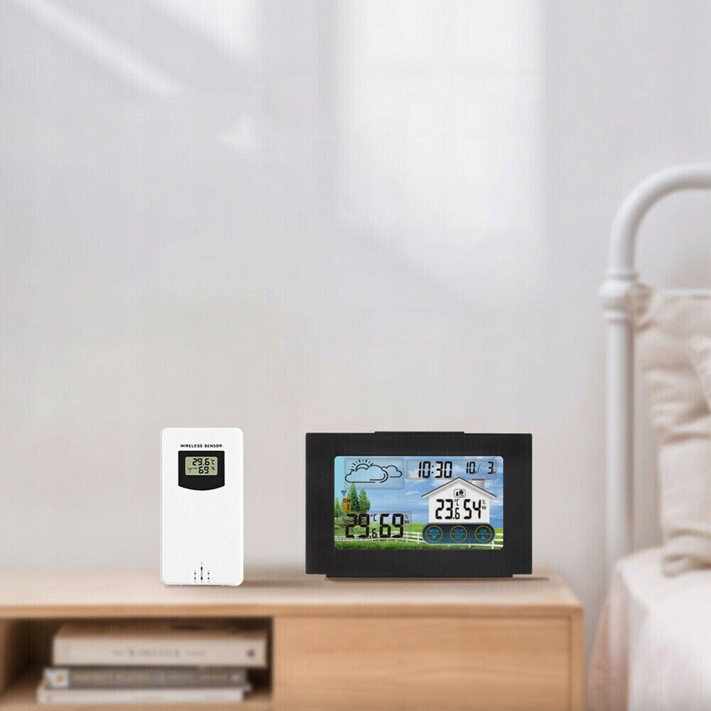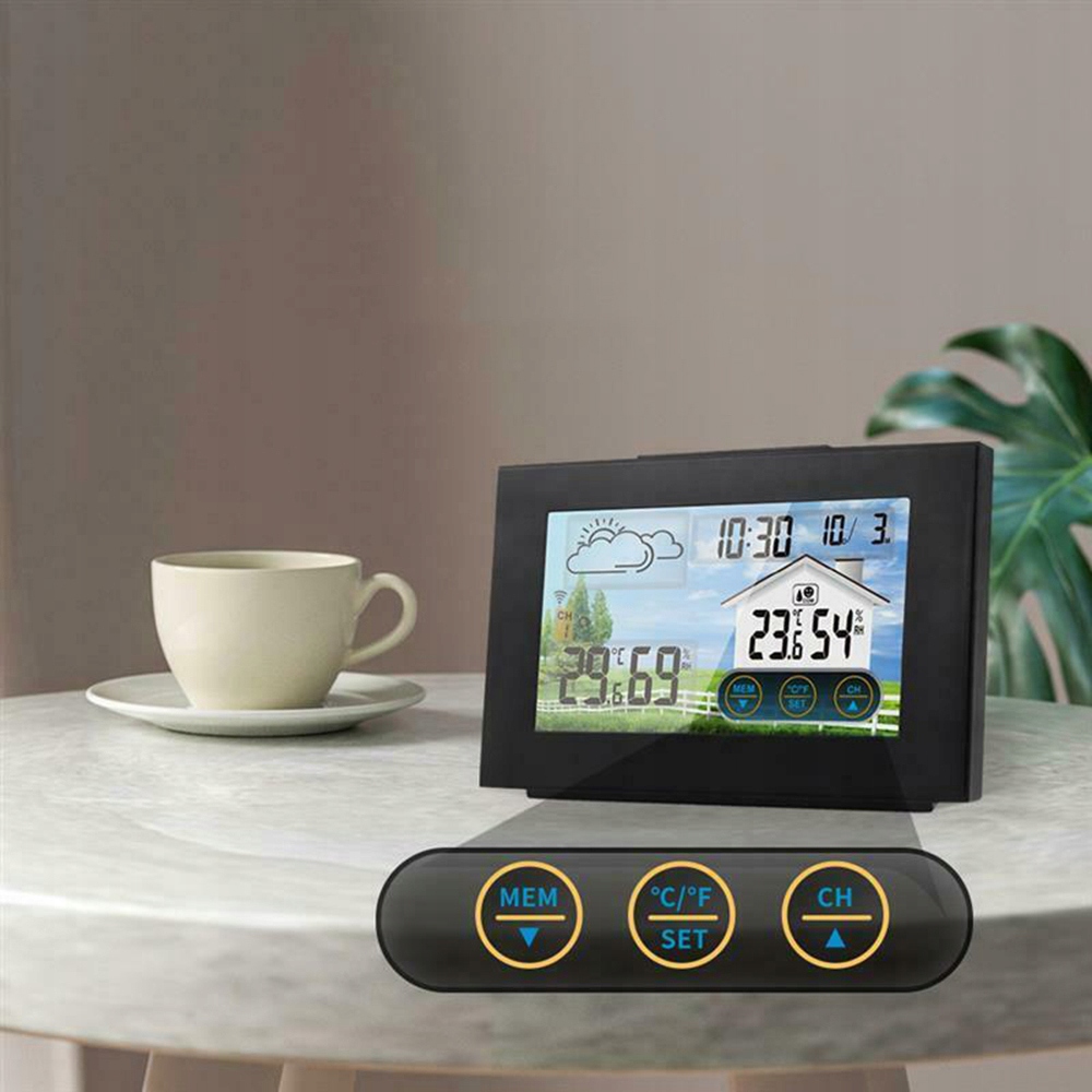【【зовнішній датчик】 метеостанція оснащена зовнішнім датчиком, а Макс.він підтримує три бездротових датчика одночасно. Датчик контролює температуру навколишнього середовища і вологість повітря і відображається на екрані датчика. Зовнішні дані регулярно автоматично синхронізуються з метеостанцією. Бездротова передача становить до 60 метрів на вільній відстані, що дозволяє розмістити її в будь-якому місці.