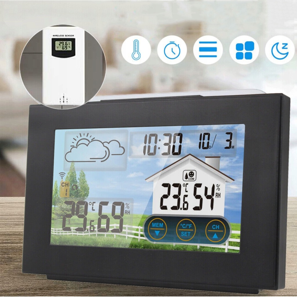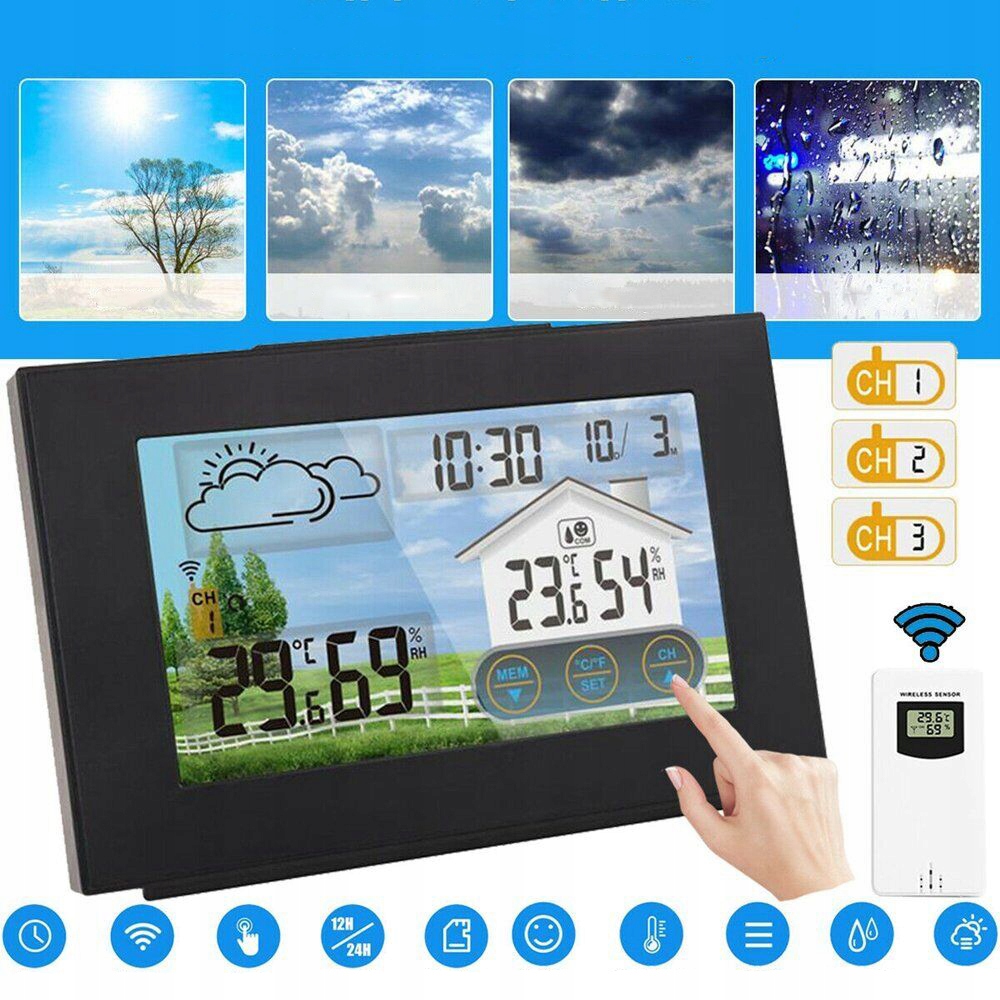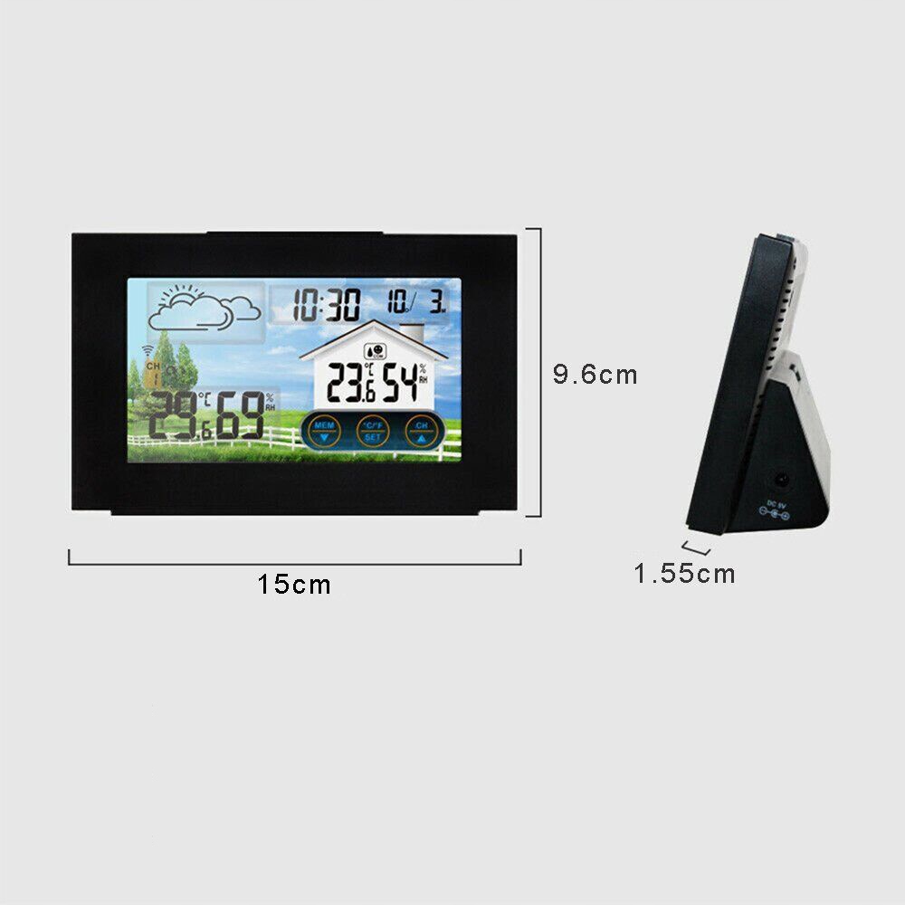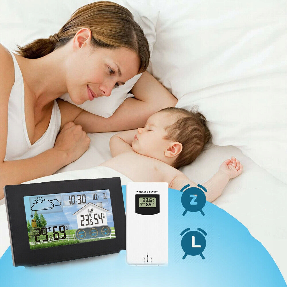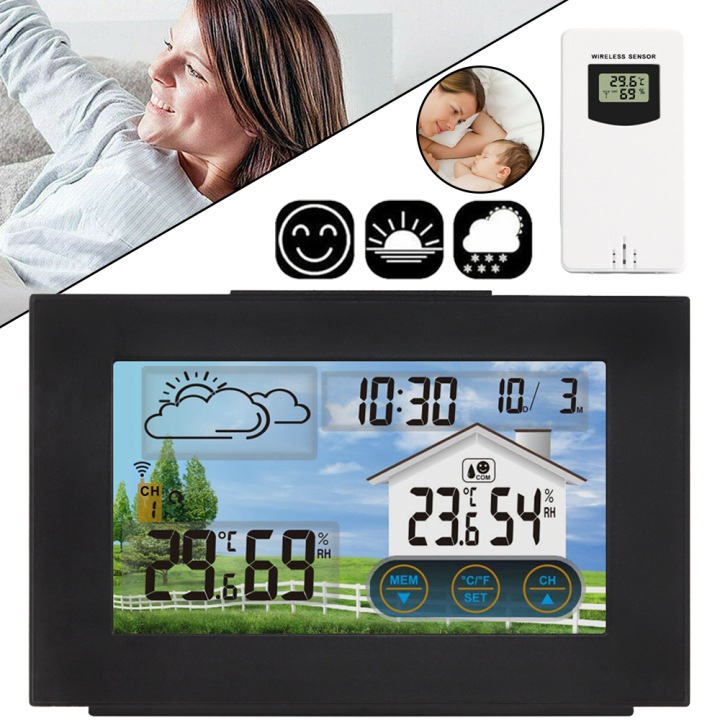 【【зовнішній датчик】 метеостанція оснащена зовнішнім датчиком, а Макс.він підтримує три бездротових датчика одночасно. Датчик контролює температуру навколишнього середовища і вологість повітря і відображається на екрані датчика. Зовнішні дані регулярно автоматично синхронізуються з метеостанцією. Бездротова передача становить до 60 метрів на вільній відстані, що дозволяє розмістити її в будь-якому місці.