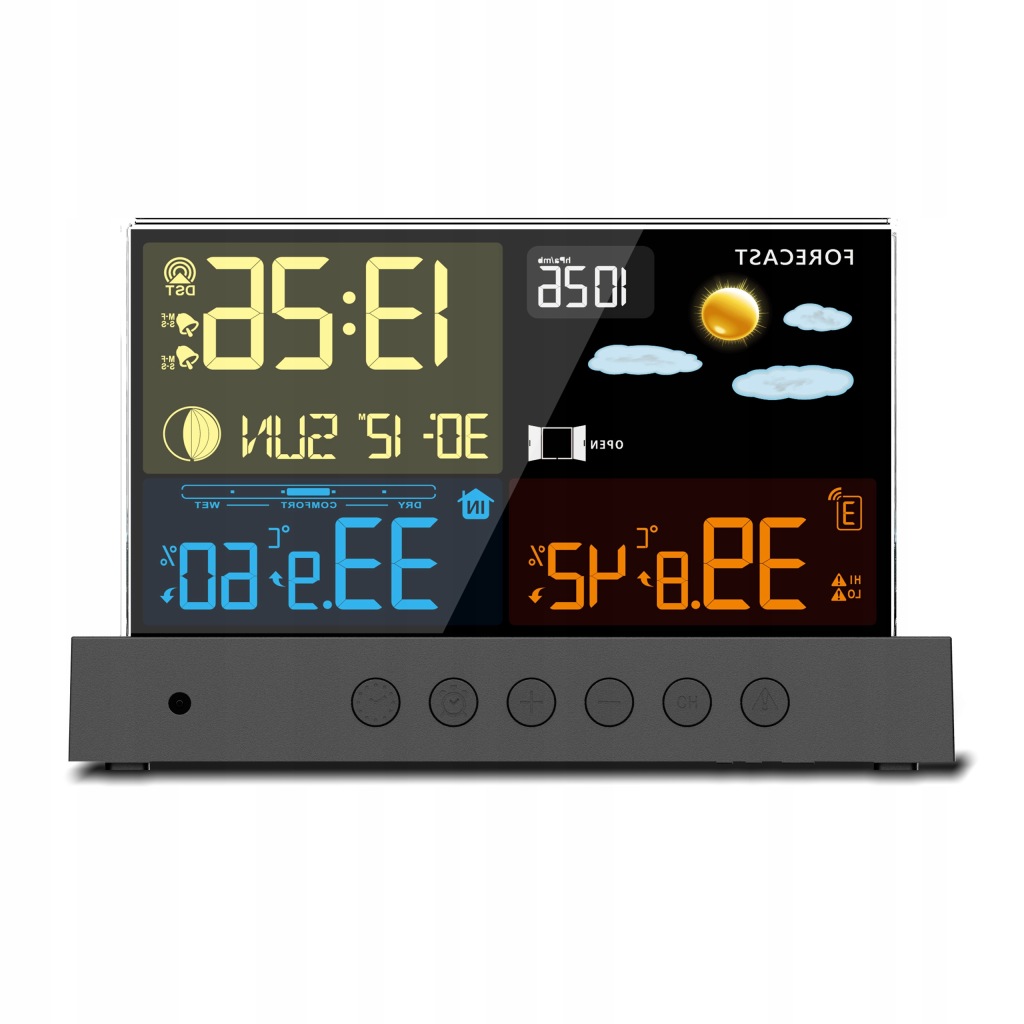 завдяки моніторингу таких параметрів, як: коливання температури, тиску і вологості, прогнозує погодні тенденції в найближчі 12-24 години. Він повідомляє нам прогнозовану погоду за допомогою піктограм.