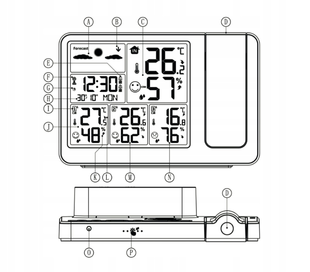 - лазерний проектор часу і температури