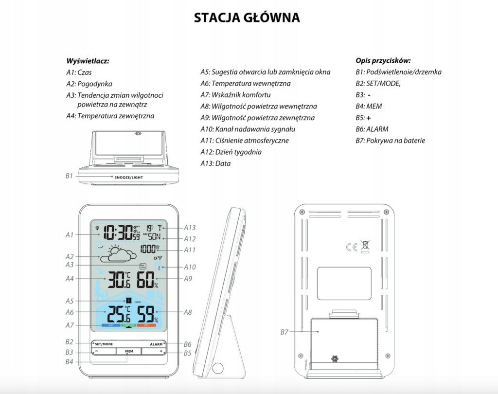 завдяки моніторингу таких параметрів, як: коливання температури, тиску і вологості, прогнозує погодні тенденції в найближчі 12-24 години. Він повідомляє нам прогнозовану погоду за допомогою піктограм.