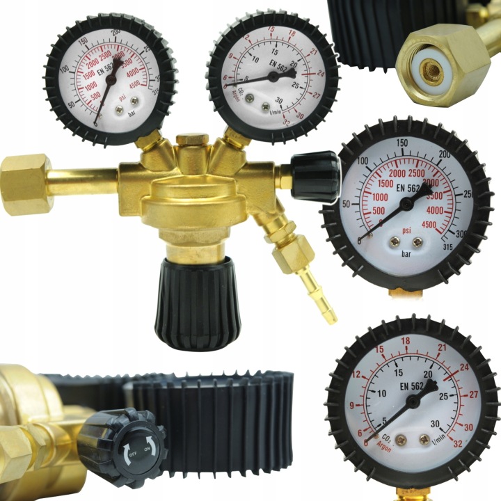 MIG CO2 вуглекислий газ аргон зварювальний редуктор 2x манометр регулювання