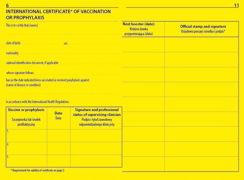 у книжці є місця для введення щеплень m.in. при гепатиті, COVID-19, жовтій лихоманці і т. д.