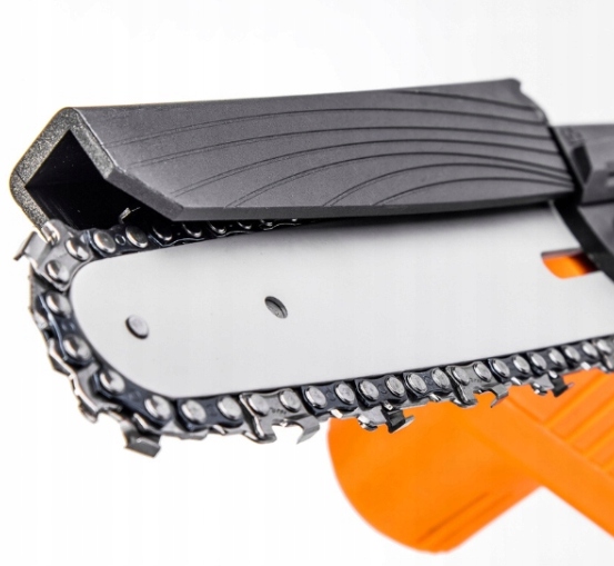 ✔️ пила оснащена захисним ланцюгом, який захищає ланцюг і захищає користувача . При різанні деревини кожух піднімається, коли пила проникає глибше в матеріал, а після різання повертається у вихідне положення