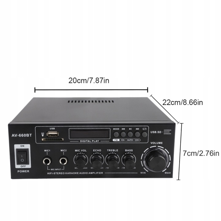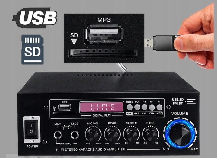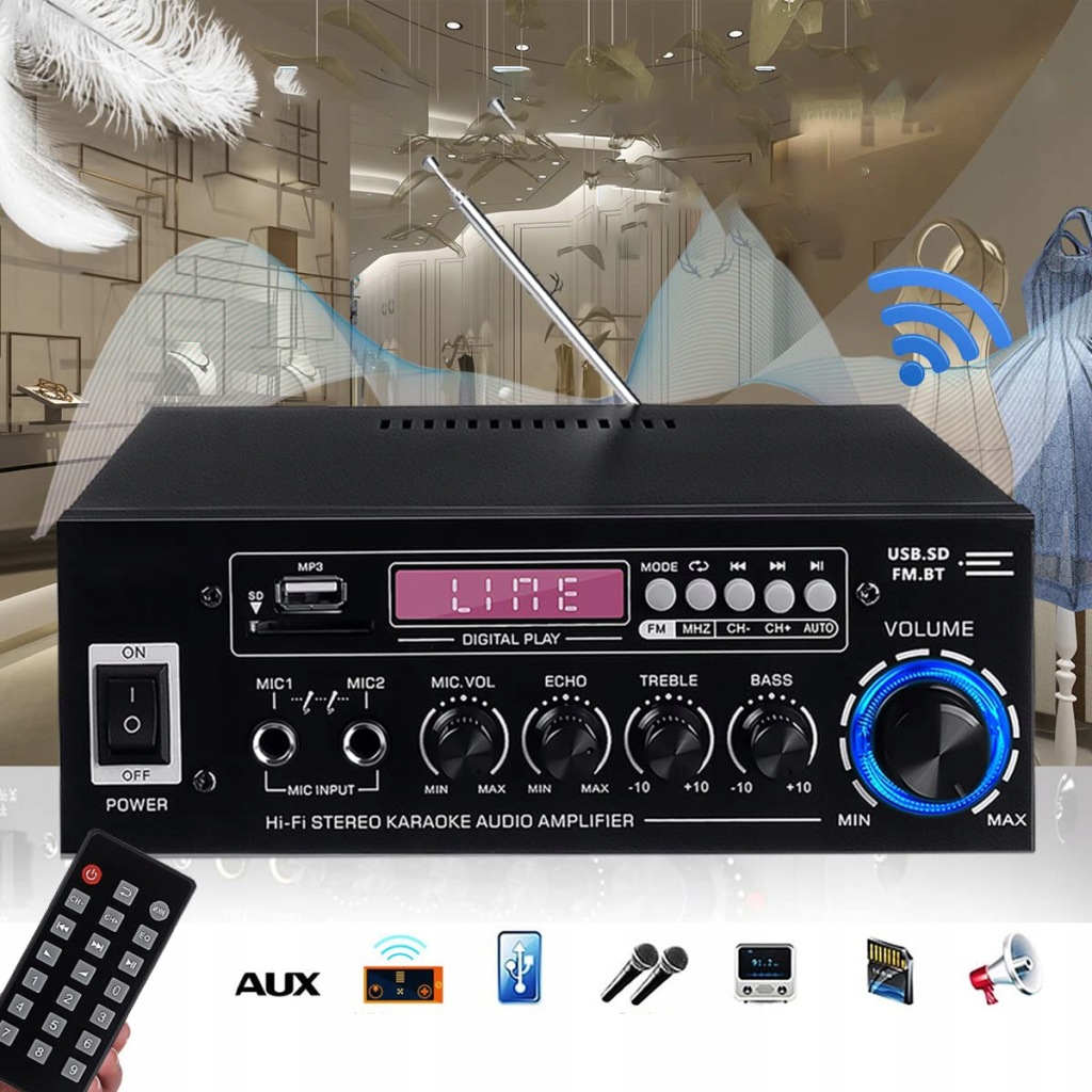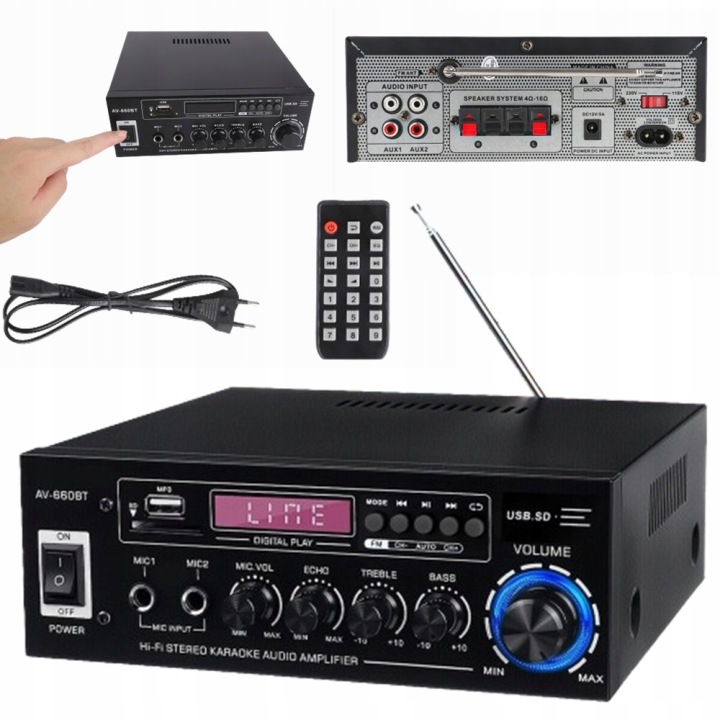 ✔️з FM-радіо, 5-смуговим мікшером еквалайзера, з регулюванням реверберації мікрофона і затримки.