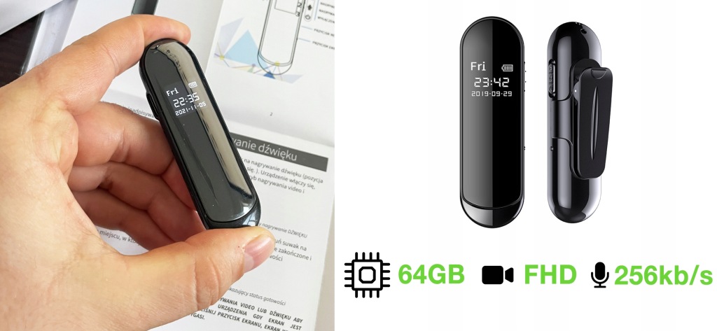 одна з найменших шпигунських камер з вбудованим РК-дисплеєм. Пристрій також має функцію диктофона. Відмінна якість збірки і компактна форма роблять пристрій дискретною камерою разом з високоякісним диктофоном!