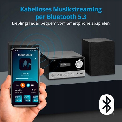 незалежно від того, яку музику ви любите слухати: MEDION LIFE p64091 пропонує ідеальний баланс високих, середніх і низьких частот на будь-який смак. Виберіть кращу настройку для вашого субʼєктивного сприйняття звуку з пʼяти різних пресетів (Flat, Classic, Rock, Pop, Jazz). Велика памʼять радіостанцій, що вміщає до 30 каналів,автоматичний і ручний пошук станцій і можливість зручного управління за допомогою пульта дистанційного керування доповнюють весь пакет.