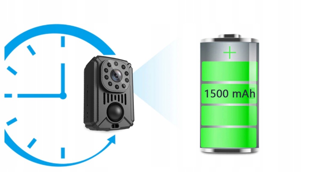 Міні-камера, завдяки вбудованій літій-іонної батареї 1500mah, дозволяє записувати відео до 11 годин.