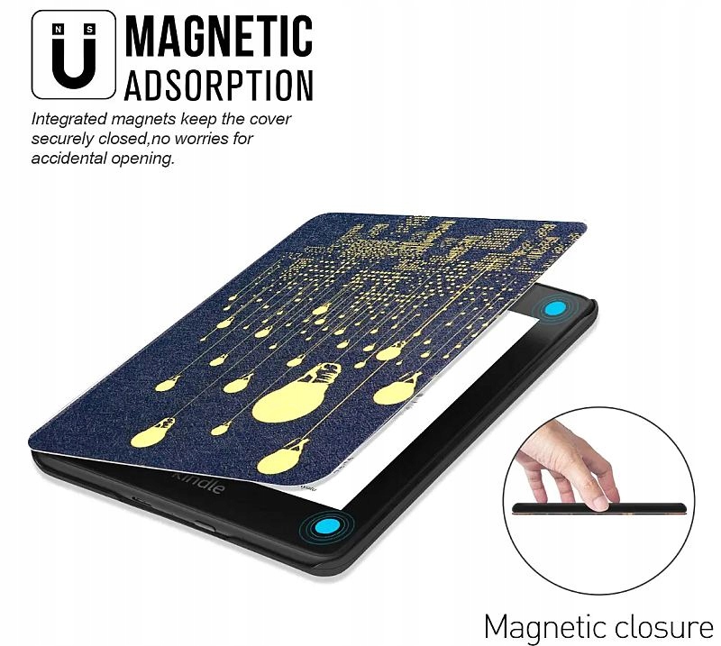 захистіть свою електронну книгу від падінь або подряпин за допомогою захисного чохла з відкидною кришкою, який призначений для 6-дюймових книжкових рідерів Amazon Kindle Paperwhite 4 . Чохол характеризується оболонкою , в яку читач легко вставляється. Внутрішня сторона корпусу має підкладку з мікрофібри, яка захищає пристрій від подряпин на дисплеї самого корпусу. Чохол має функцію wake/sleep , яка автоматично пробуджує або переводить читача в сплячий режим, в залежності від того, відкритий чохол або закритий, що економить заряд батареї. Зручне зчитування в одній руці забезпечує за допомогою передньої поворотної кришки. Від випадкового відкриття його захищає магніт. Він виконаний в стильній теміLIGHTS .