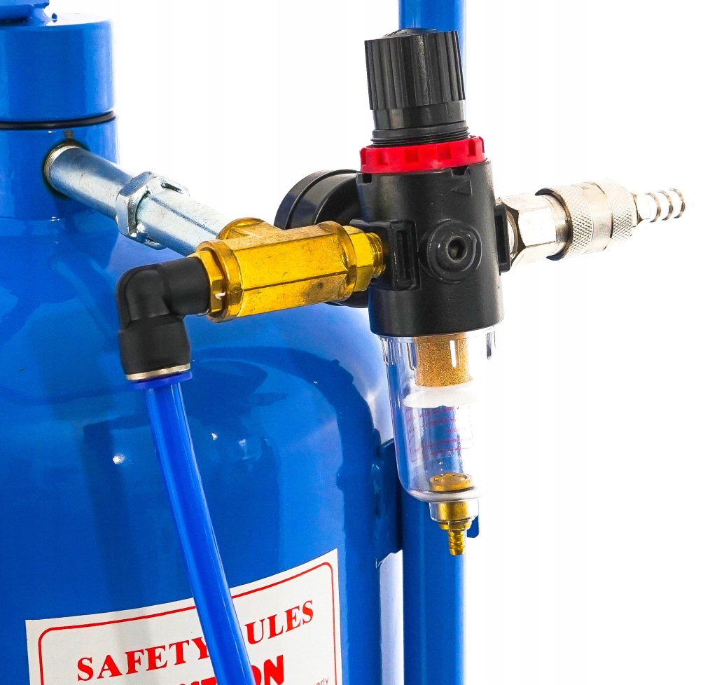 впускний трубопровід піскоструминної машини завершений манометром з дегідратором і функцією регулювання тиску робочого повітря