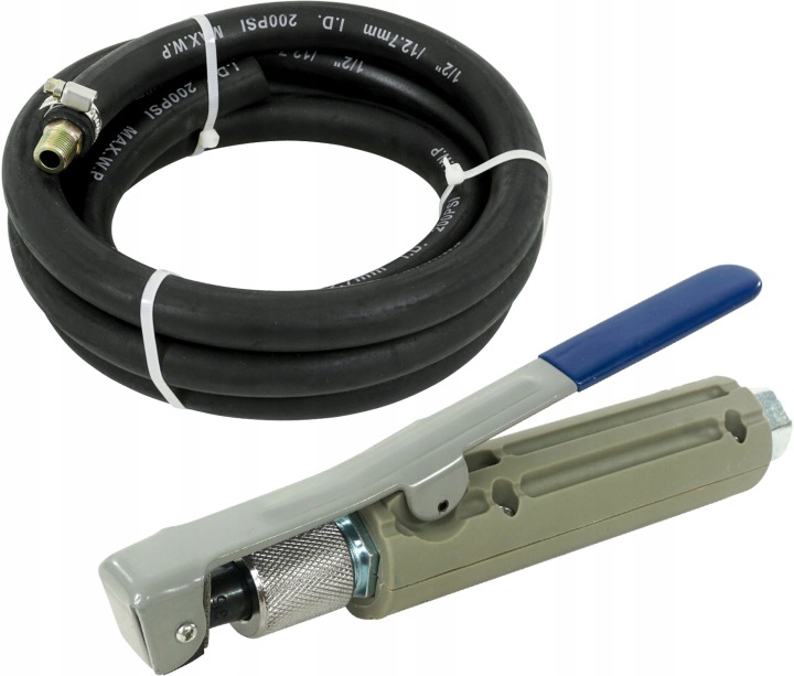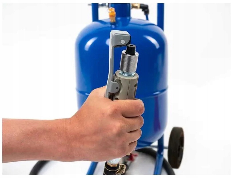 У комплект входить міцний, досить товстий і довгий піскоструминний шланг, який гарантує правильне робочий тиск, а також інтуїтивно зрозумілий пістолет з клапаном.