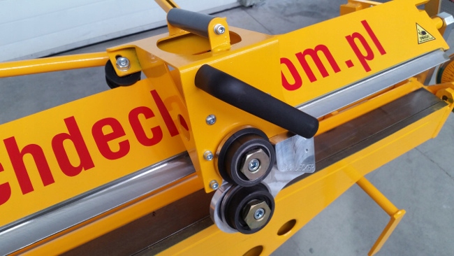 - задній стіл з опором (1000 мм)– дозволяє розміщувати лист і вільно переміщати його. Його можна використовувати як місце для укладання листового металу. Оснащений шкалою, яка дозволяє точно розташувати вигнутий і розрізаний лист.Чи>